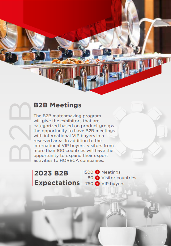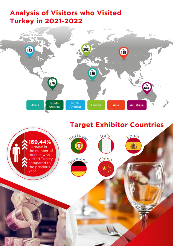 土耳其國際酒店餐飲業(yè)博覽會至今已成功舉辦25屆,土耳其專業(yè)程度世界排名第二(全區(qū)規(guī)模最大是米蘭HOST)的酒店餐飲行業(yè)展會,該展會由CNR控股主辦,土耳其食品服務、洗衣及服務設備制造商和商人協會。2021年來自80個國家的1500多家酒店、餐廳、咖啡廳、糕點設備制造商和采購人士在展會現場相聚。該展會是您想要進入土耳其市場,認識當地趨勢和發(fā)現新產品的絕佳機會。